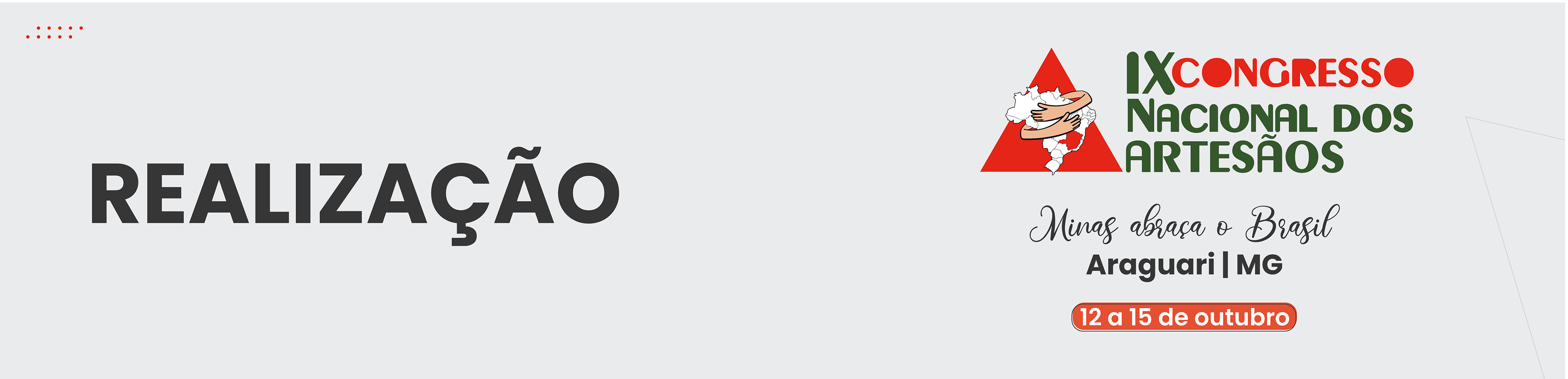 O IX CNA será coordenado e organizado pela Federação do Artesão Mineiro – FAM e realizado em Araguari/MG, no período de 12 a 15 de outubro de 2023, conforme decisão tomada e homologada em Sessão Ordinária do VIII Congresso, realizado no período de 18 a 20 de março de 2022, em Aracruz- ES.